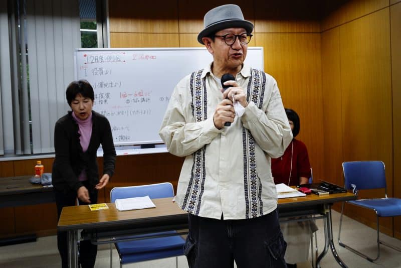 ついに直感勝負の方も迷いに迷われた方も、全員の投票が終わってちょっと一息。ドキドキの講評会の前の静けさです。ついでに役員の紫竹さんからお話です。